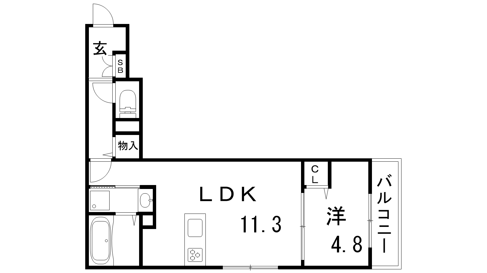 - LDK11.3帖、洋室4.8帖