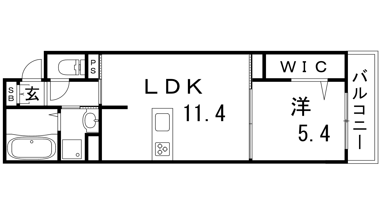 - LDK11.4帖、洋室5.4帖
