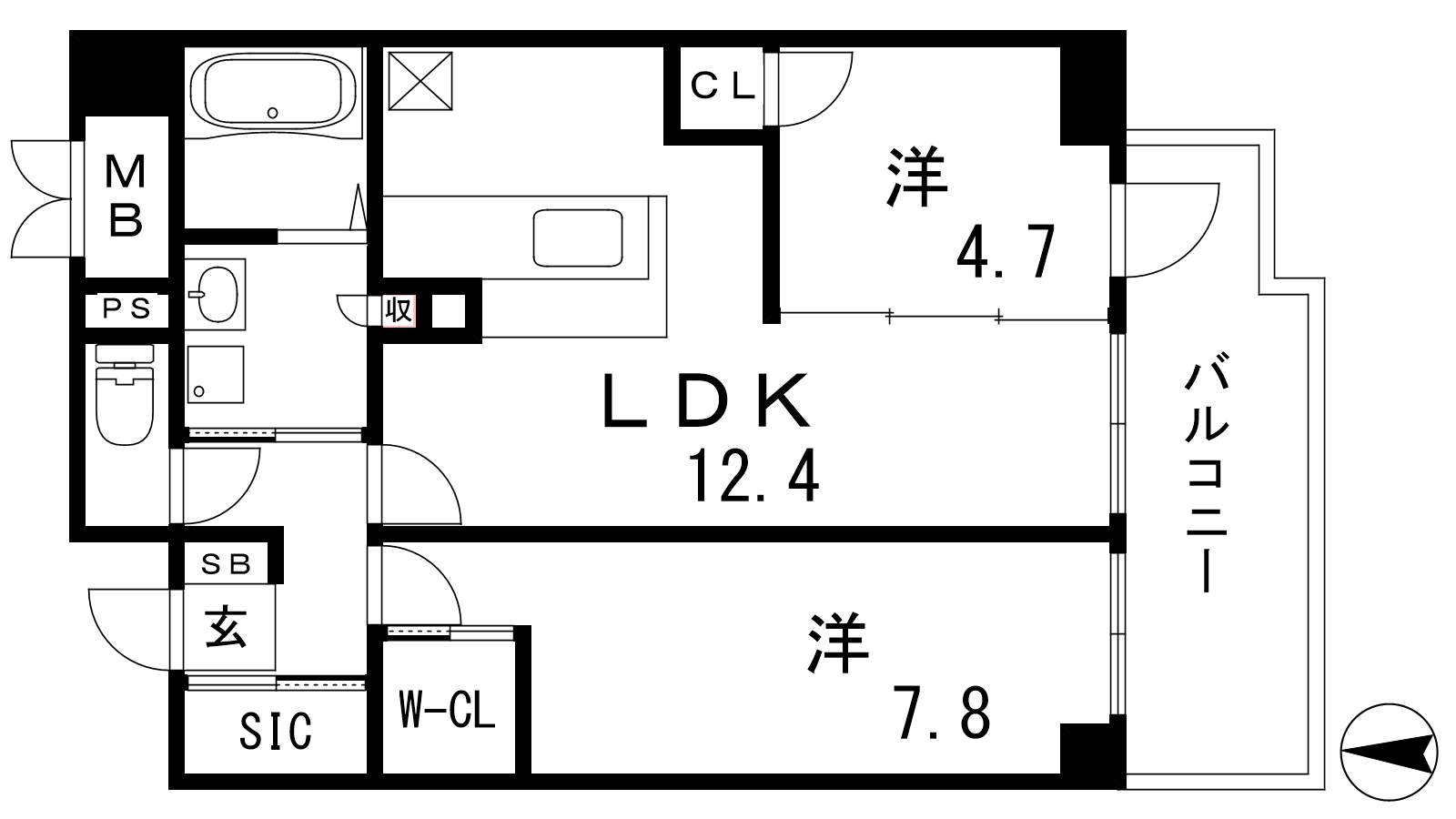 - LDK12.4帖、洋室7.8帖、洋室4.7帖