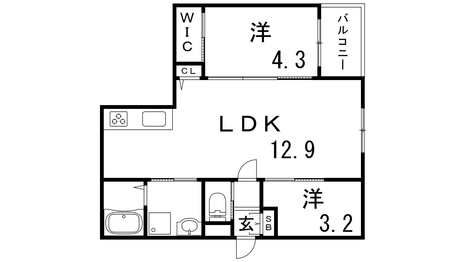 - LDK12.9帖、洋室3.2帖、洋室4.3帖