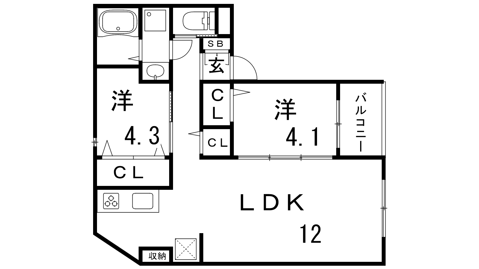 - LDK12帖、洋室4.1帖、洋室4.3帖