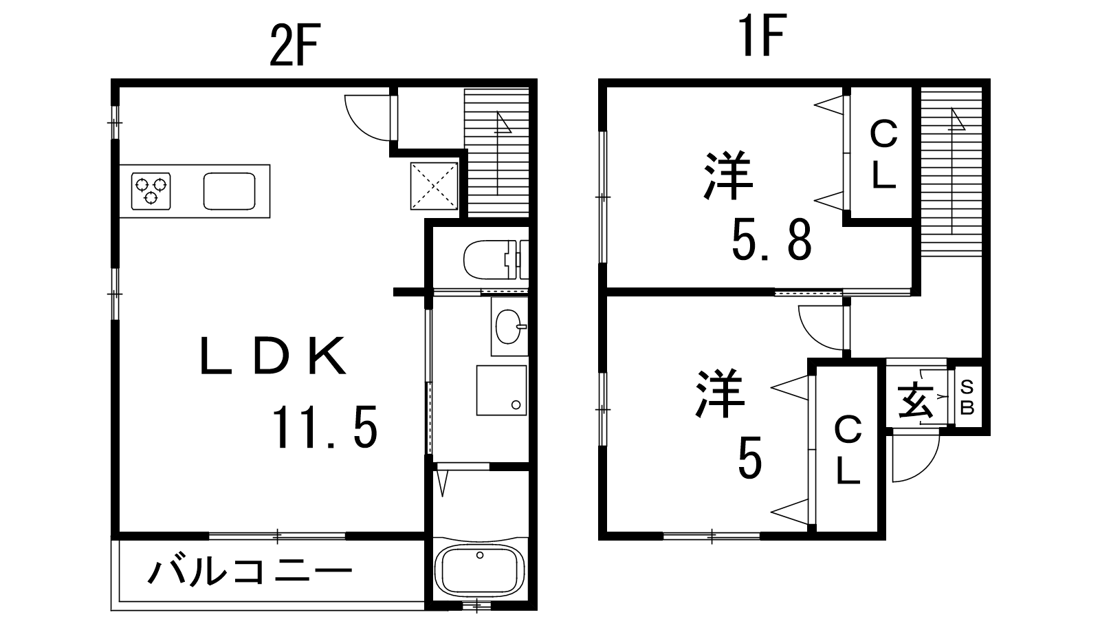 - LDK11.5帖、洋室5.8帖、洋室5帖