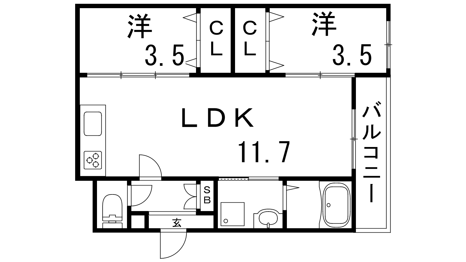 - LDK11.7帖、洋室3.5帖、洋室3.5帖