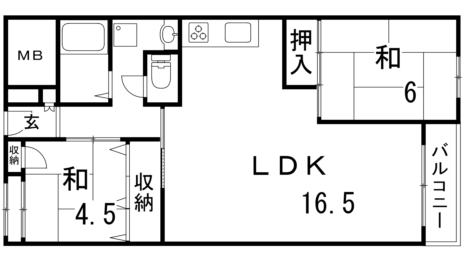 - LDK16.5帖、和室6帖、和室4.5帖
