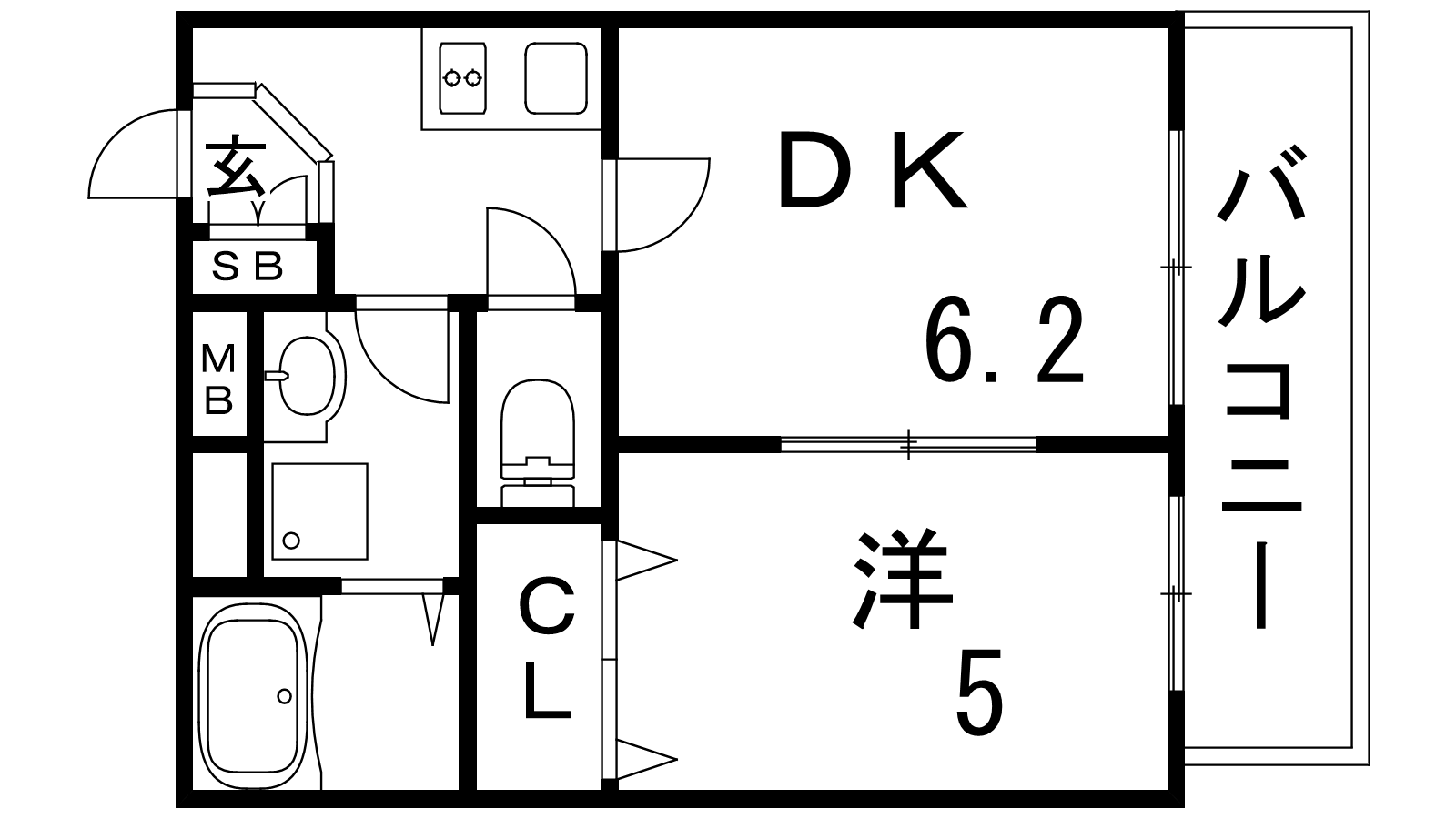 - DK6.2帖、洋室5帖