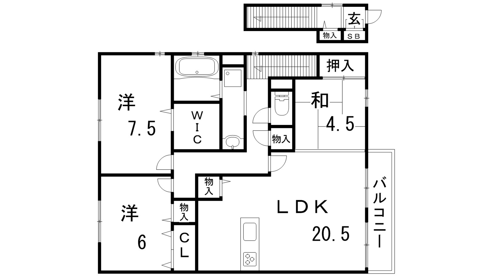 - LDK20.5帖、洋室7.5帖、洋室6帖、和室4.5帖