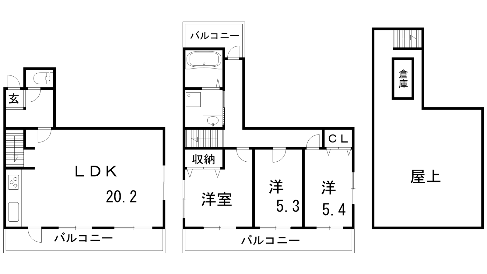 - LDK20.2帖、洋室5.3帖、洋室5.4帖