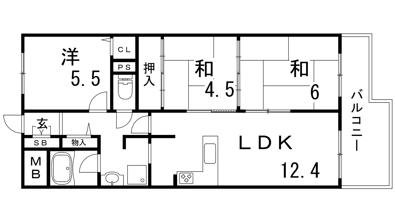 - LDK12.4帖、和室6帖、和室4.5帖、洋室5.5帖