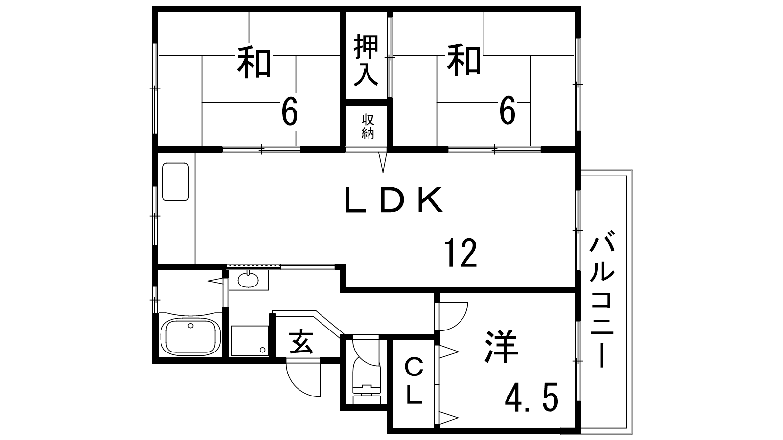 - LDK12帖、洋室4.5帖、和室6帖、和室6帖