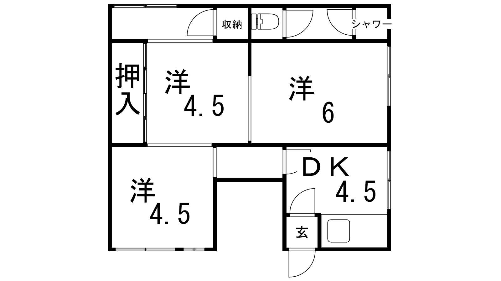 - 洋室4.5帖、洋室4.5帖、洋室6帖