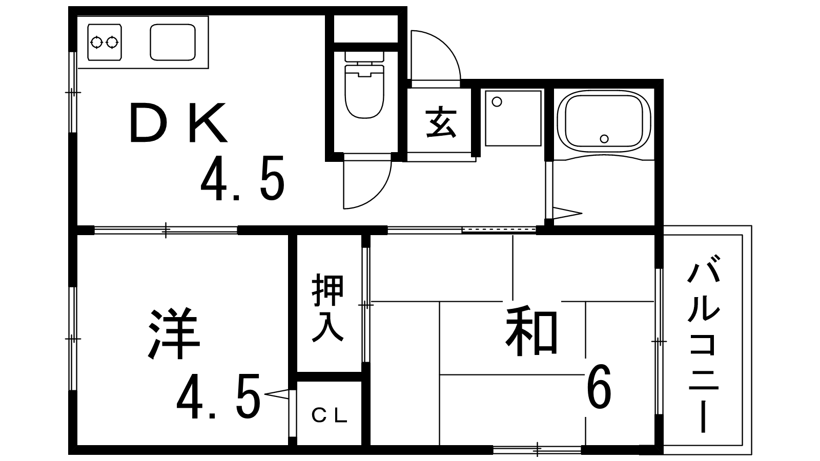 - DK4.5帖、洋室6帖、洋室4.5帖