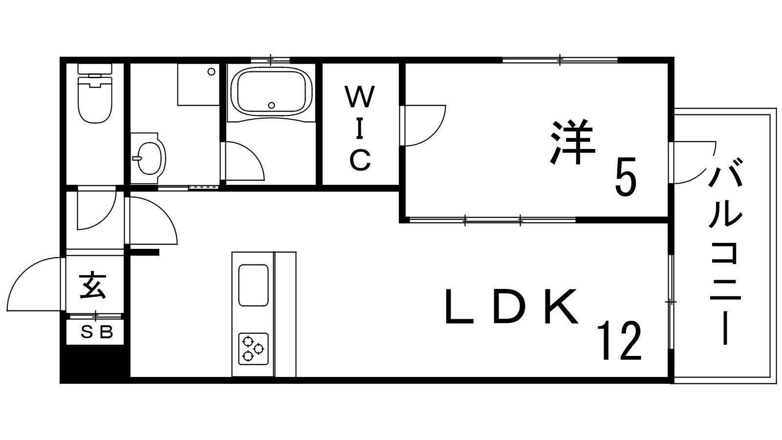 - LDK12帖、洋室5帖