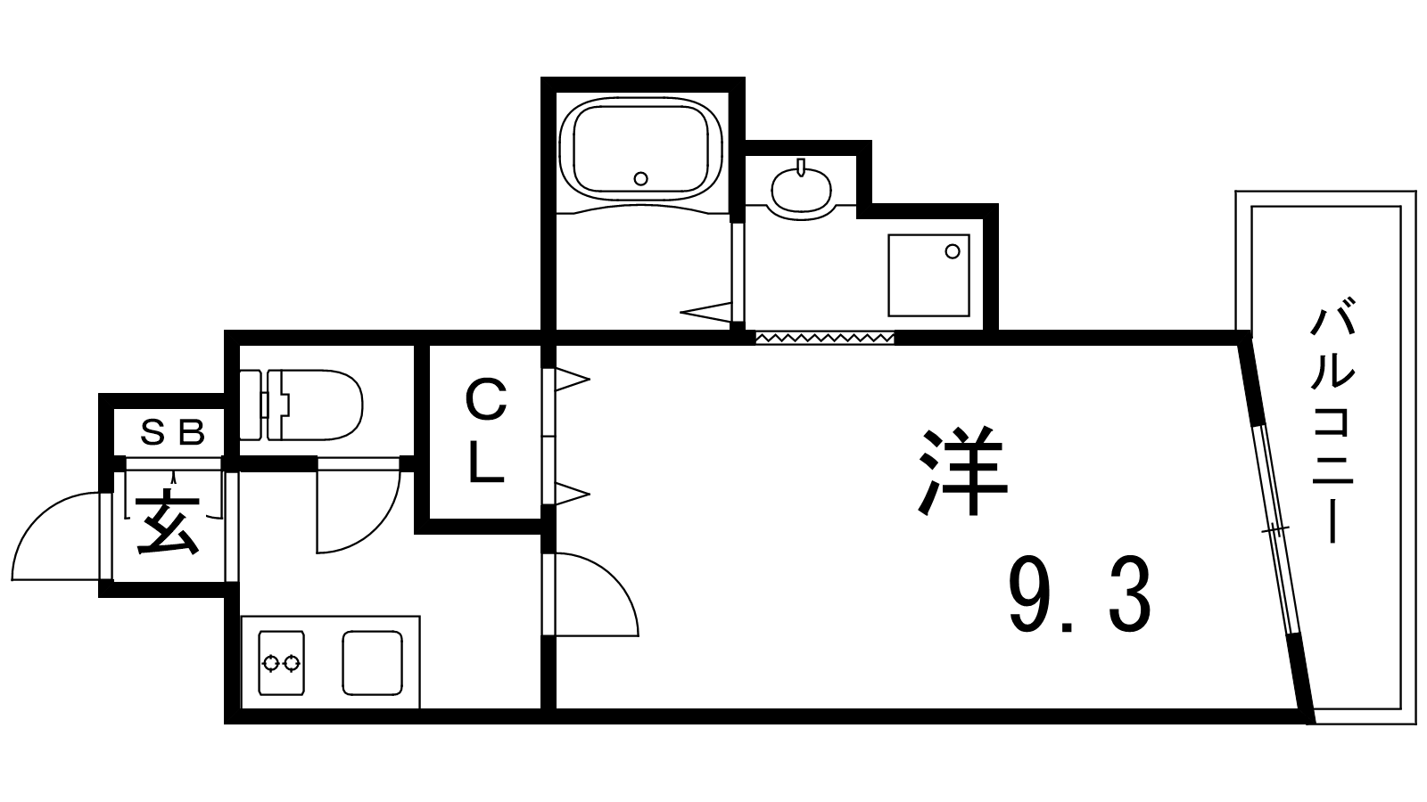- K2帖、洋室9.3帖