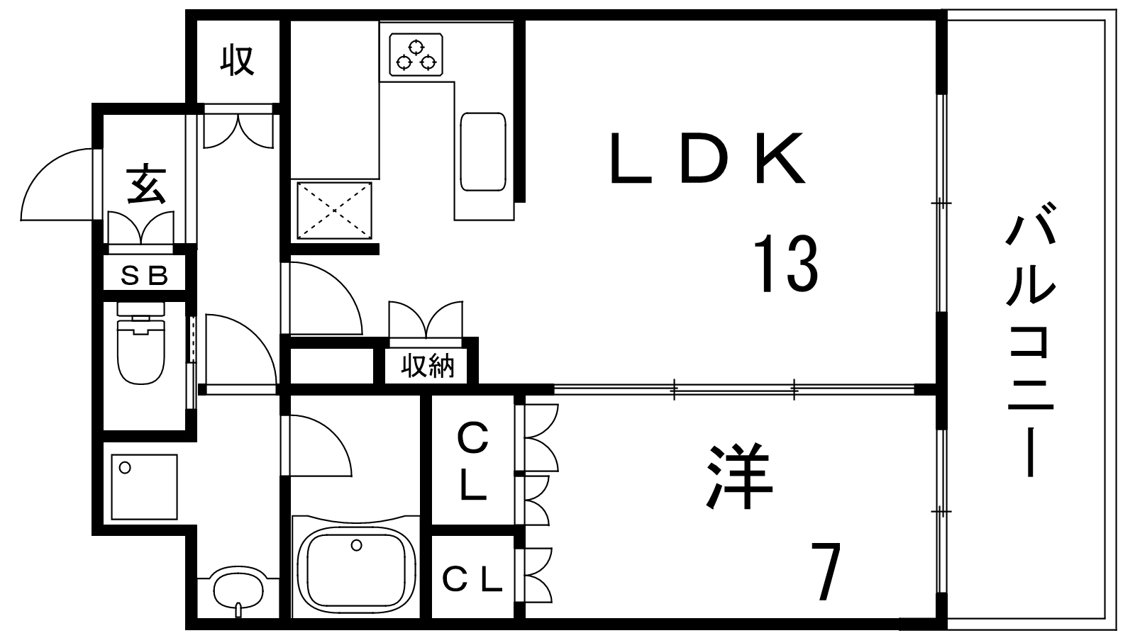 - LDK13帖、洋室7帖