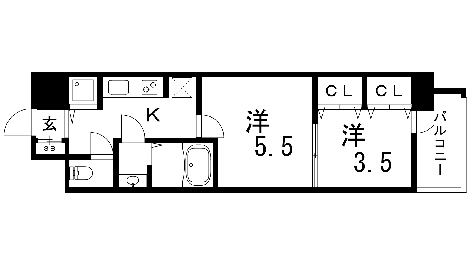 - 洋室5.5帖、洋室3.5帖
