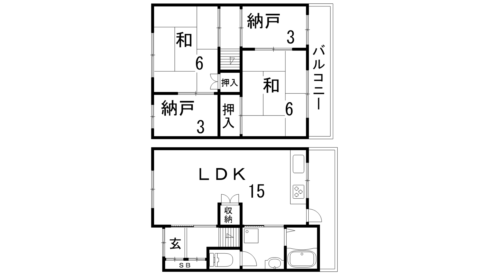 - LDK15帖、和室6帖、和室6帖、S3帖