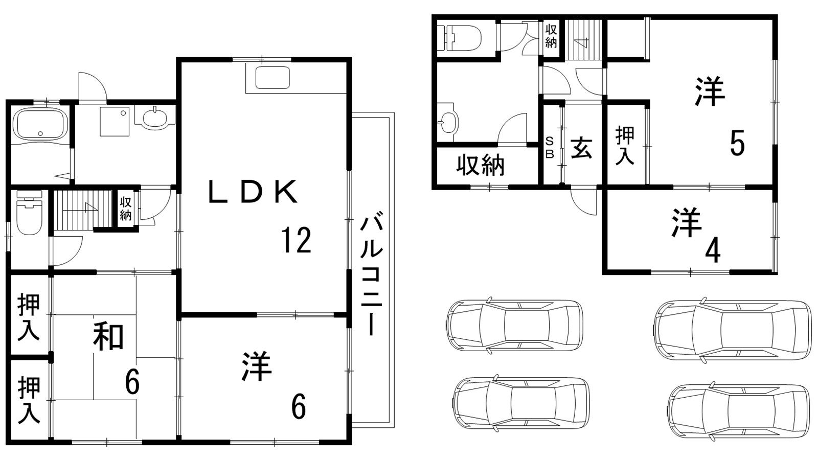 - LDK12帖、洋室6帖、和室6帖、洋室6帖、洋室4帖