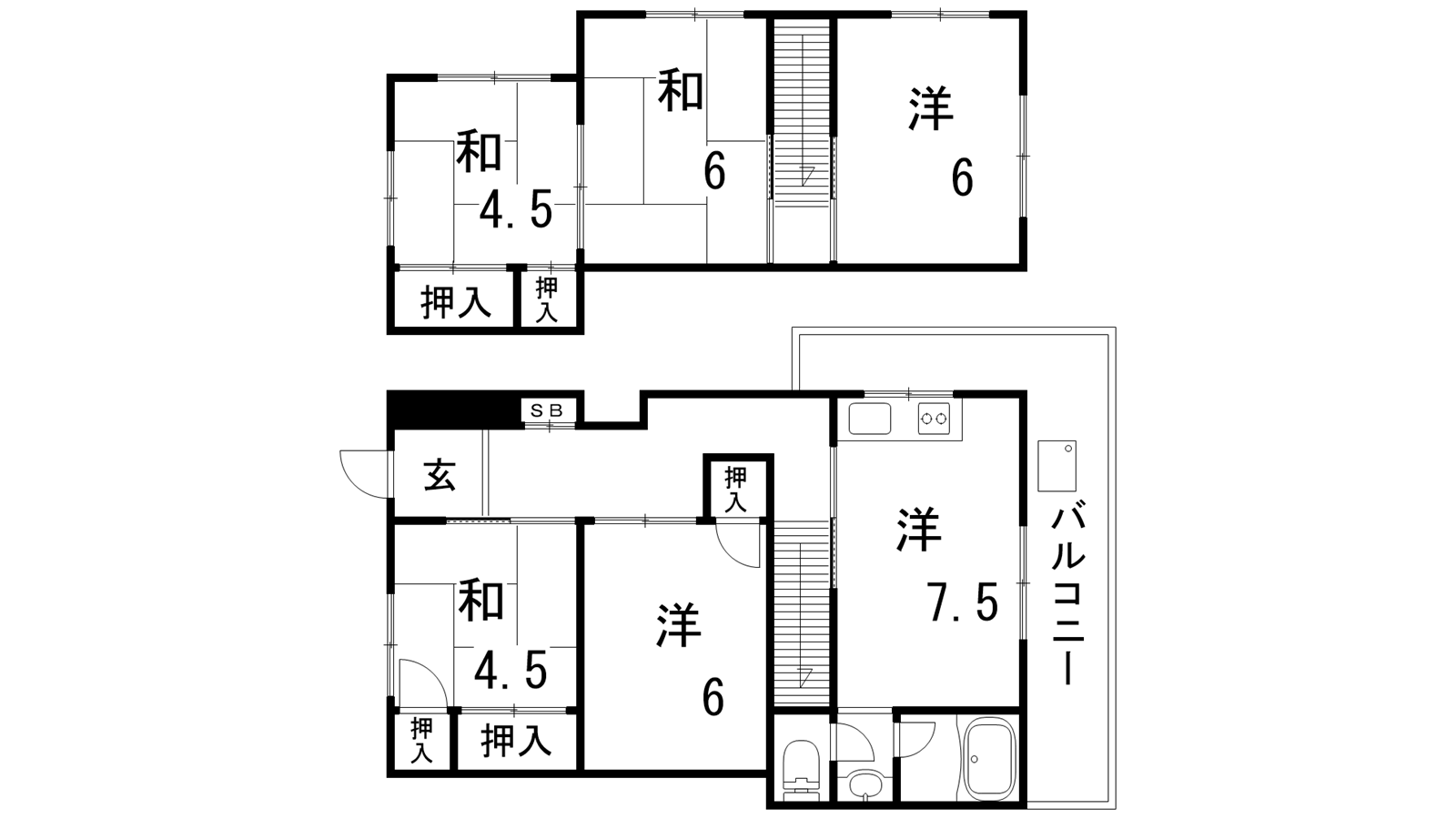 - 和室4.5帖、和室4.5帖、和室6帖、洋室6帖、洋室6帖、洋室7.5帖