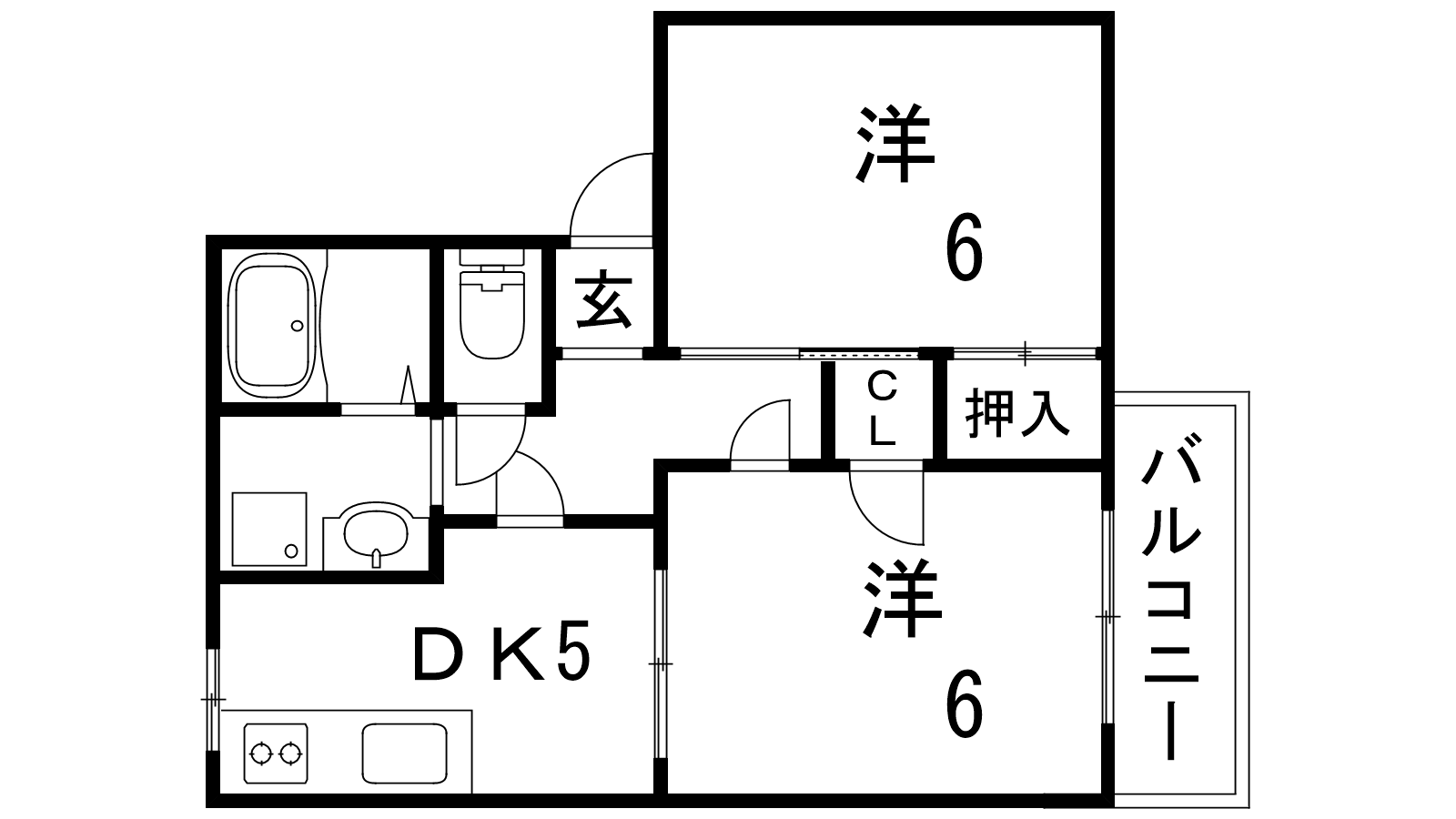 - DK5帖、洋室6帖、洋室6帖