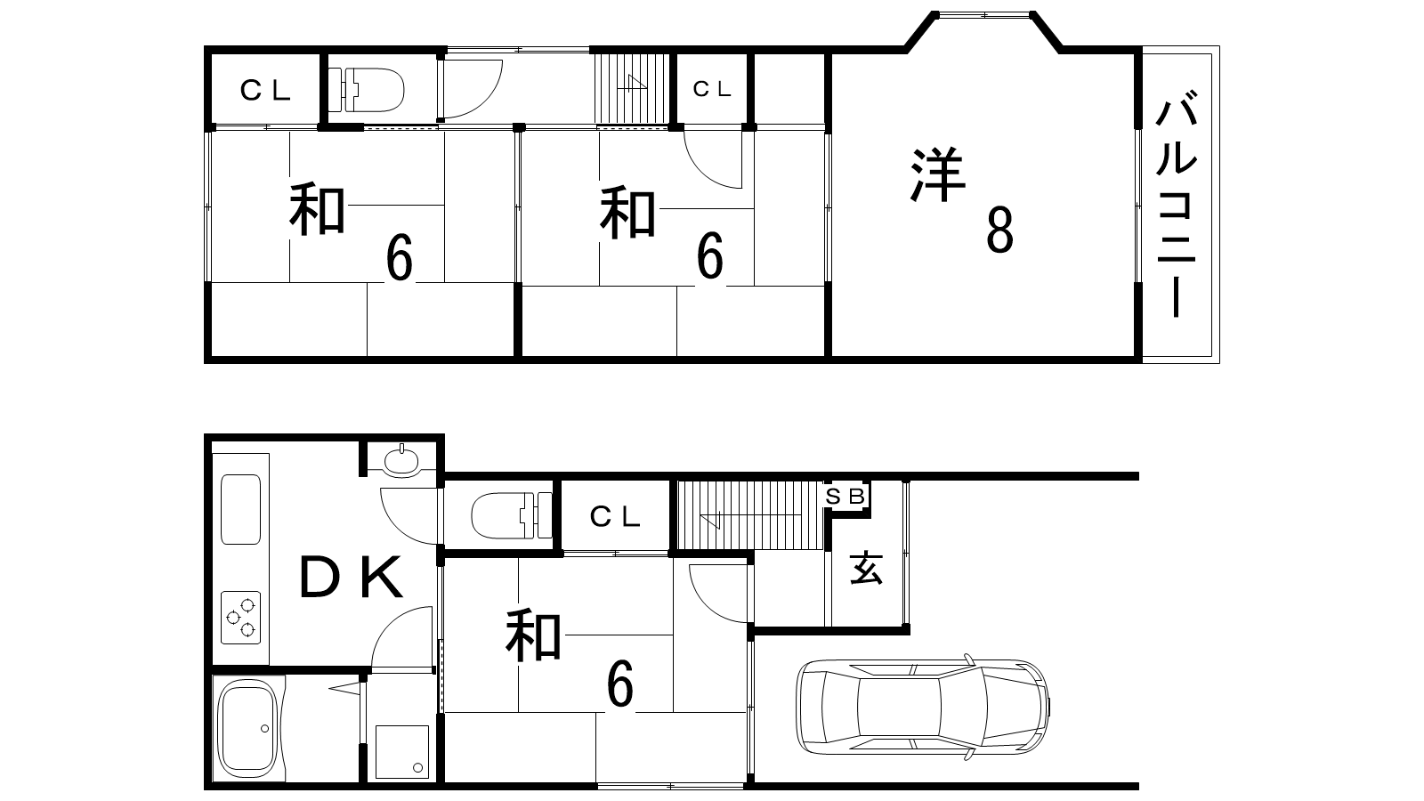 - DK4.5帖、和室6帖、和室6帖、和室6帖、洋室8帖
