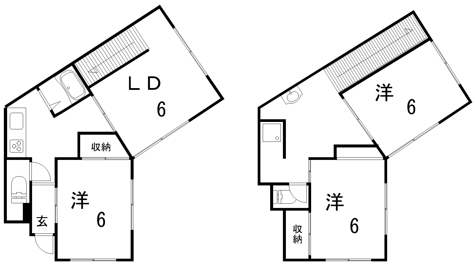 - LD6帖、K5帖、洋室6帖、洋室6帖、洋室6帖