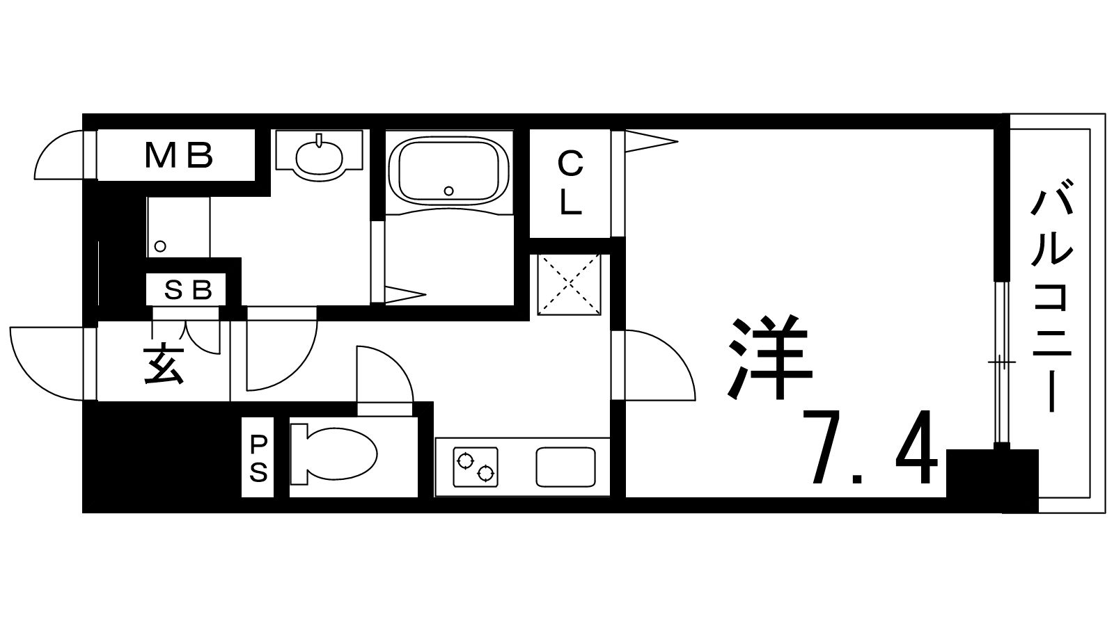- K3帖、洋室7.4帖