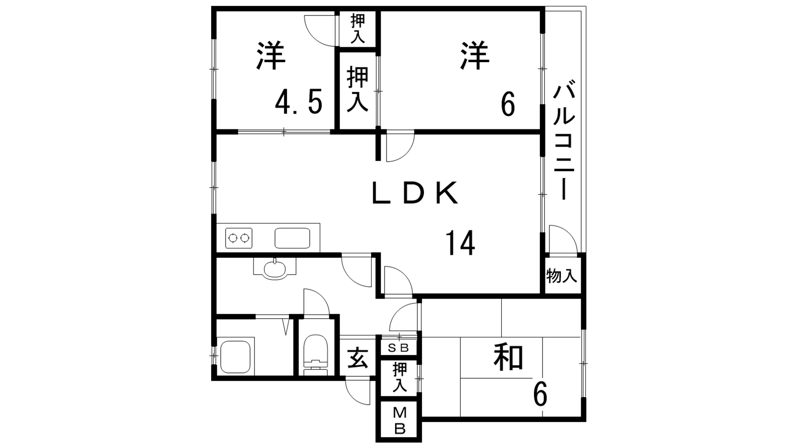 - LDK14帖、和室6帖、洋室6帖、洋室4.5帖