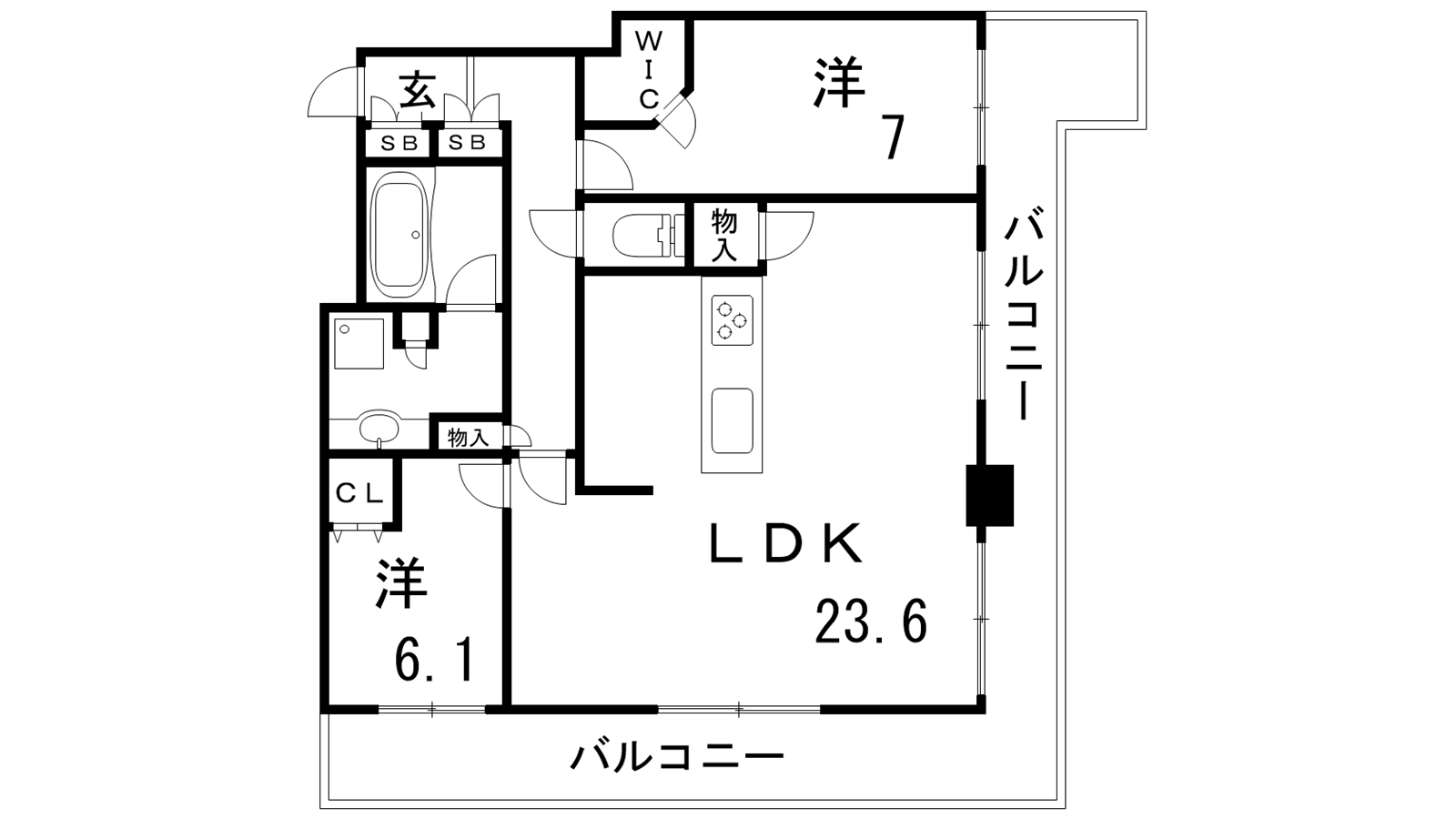 - LDK23.6帖、洋室6.1帖、洋室7帖