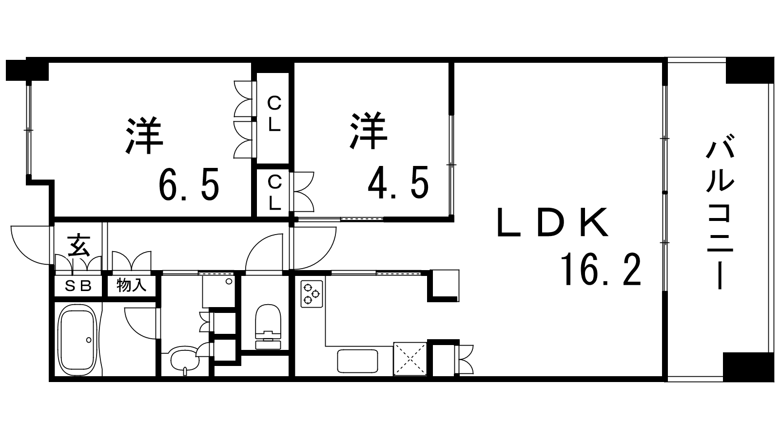 - LDK16.2帖、洋室6.5帖、洋室4.5帖