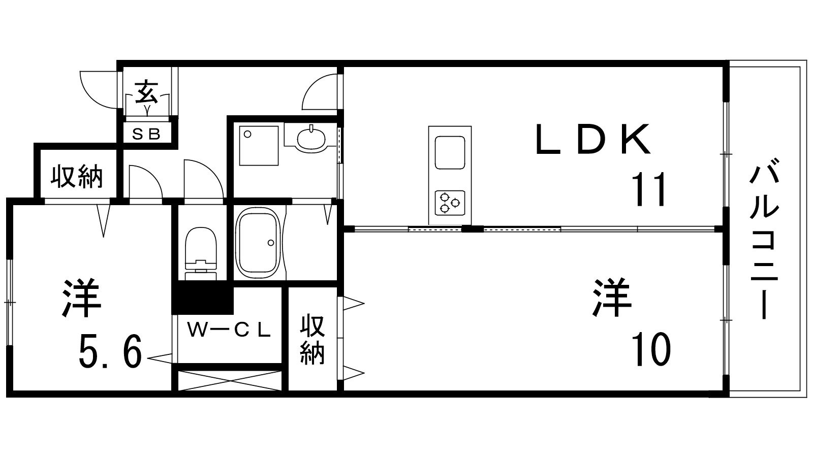 - LDK11帖、洋室10帖、洋室5.6帖