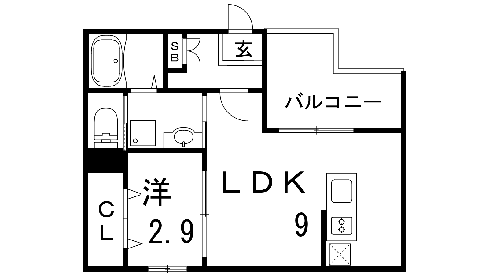 - LDK9帖、洋室2.9帖