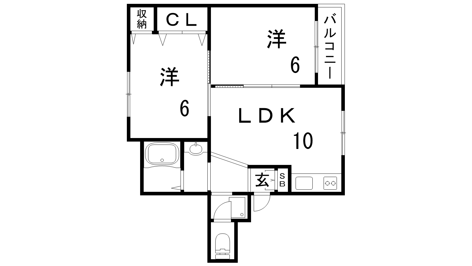 - LDK10帖、洋室6帖、和室6帖