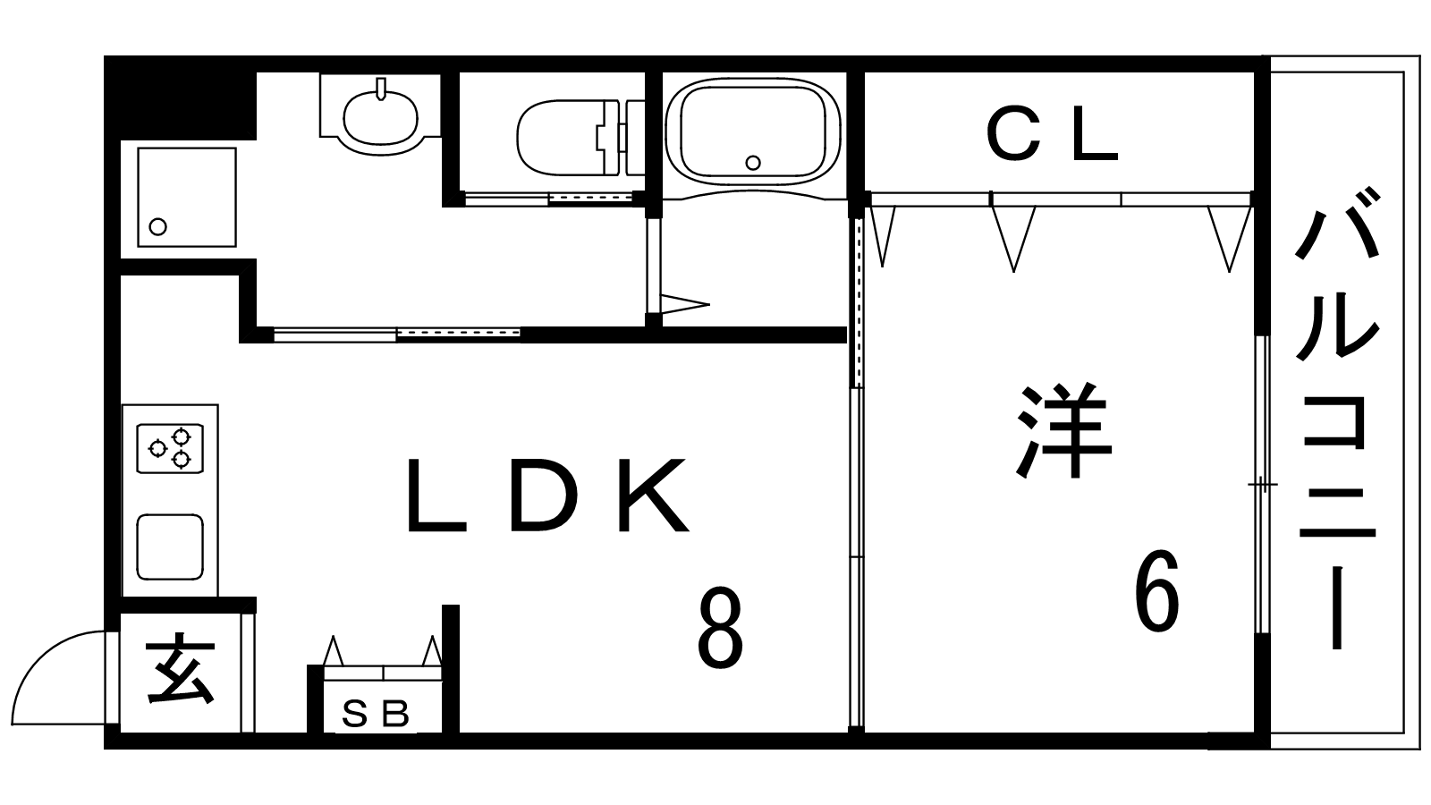 - LDK8帖、洋室6帖