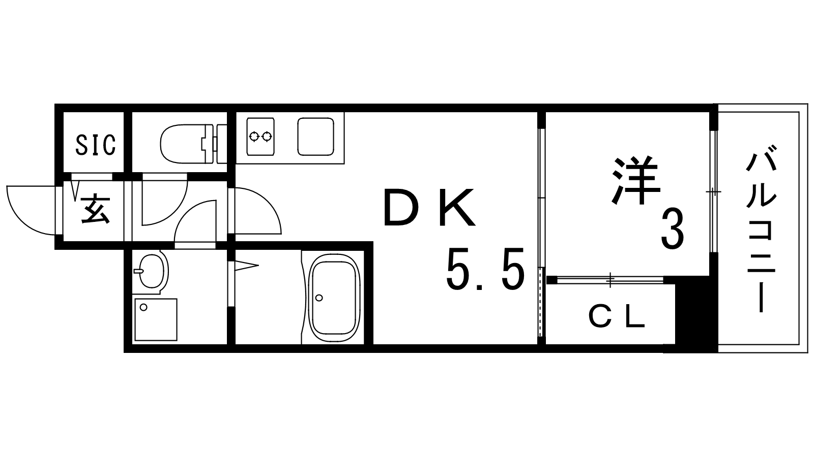 - DK5.5帖、洋室3帖