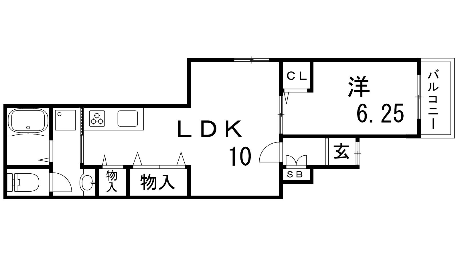 - LDK10帖、洋室6.25帖