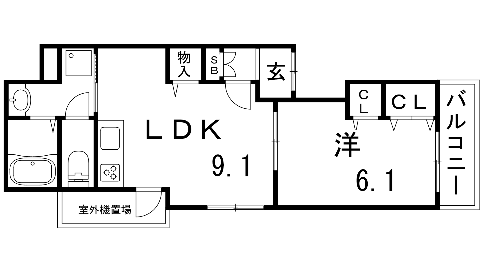 - LDK9.1帖、洋室6.1帖