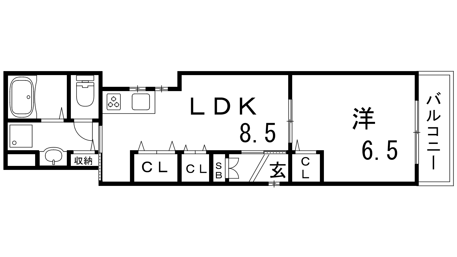 - LDK8.5帖、洋室6.5帖