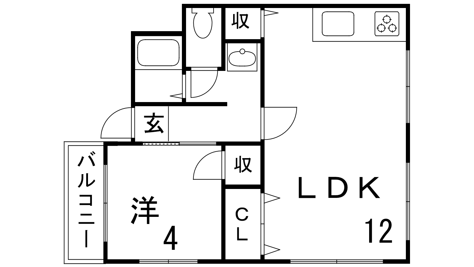 - LDK12帖、洋室4帖