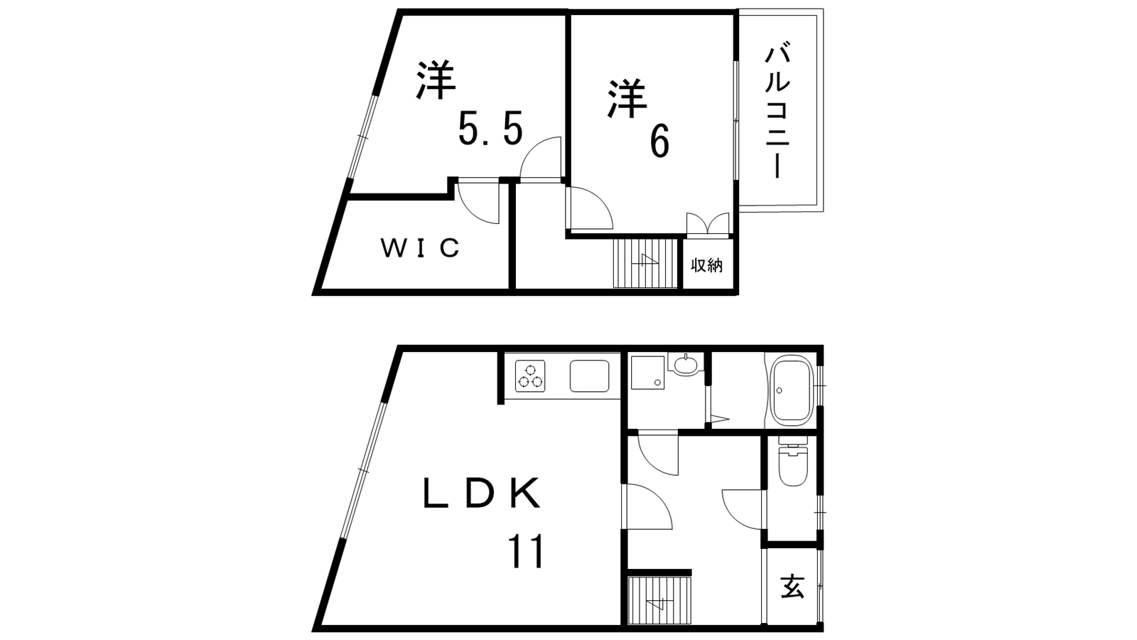 - LDK11帖、洋室5.5帖、洋室6帖
