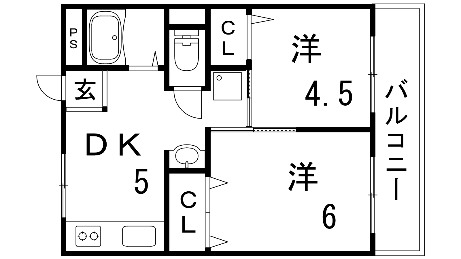 - DK5帖、洋室4.5帖、洋室6帖