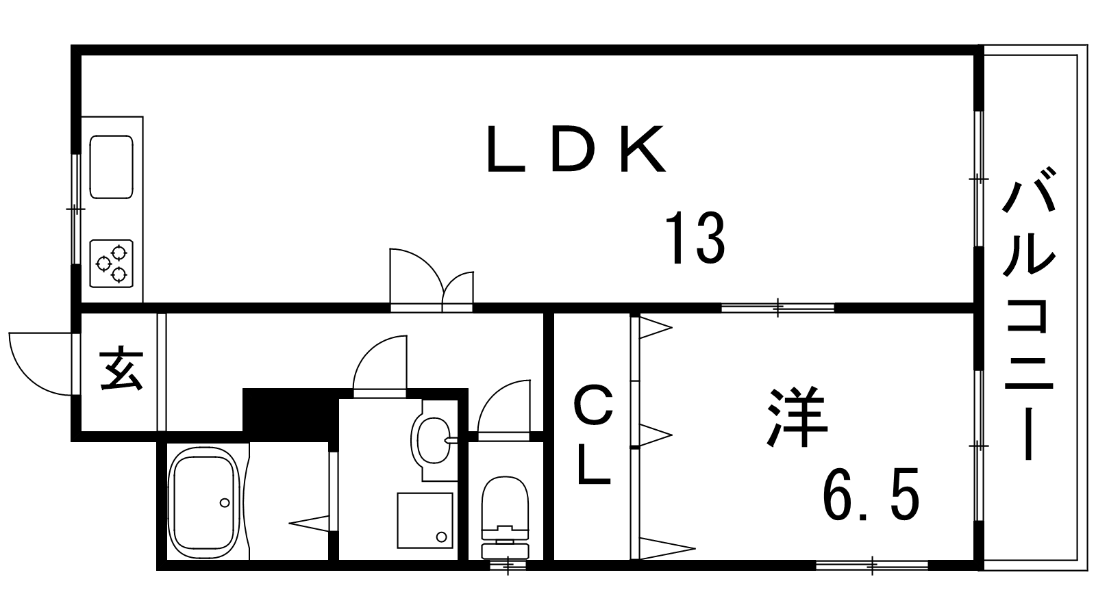 - LDK13帖、洋室6.5帖
