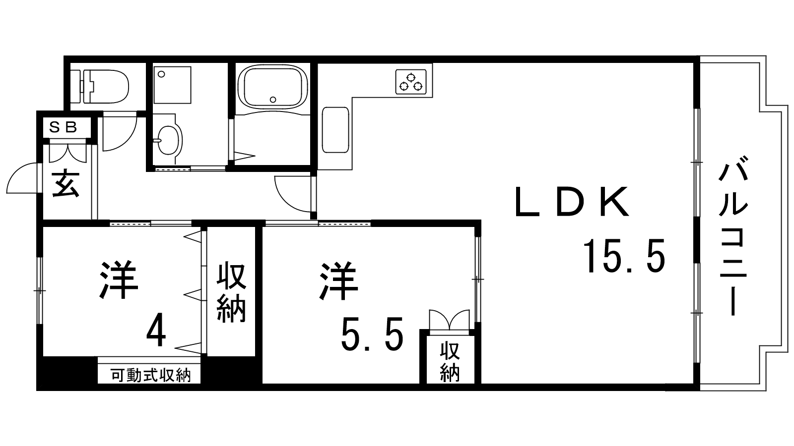 - 洋室4帖、洋室5.5帖、LDK15.5帖