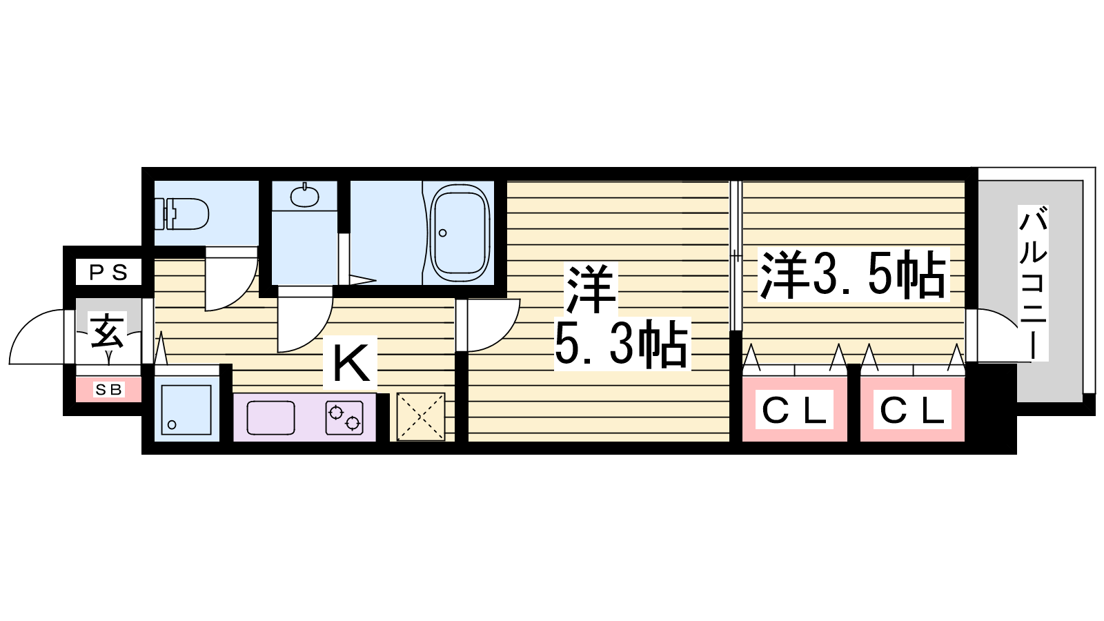 - 洋室5.3帖、洋室3.5帖