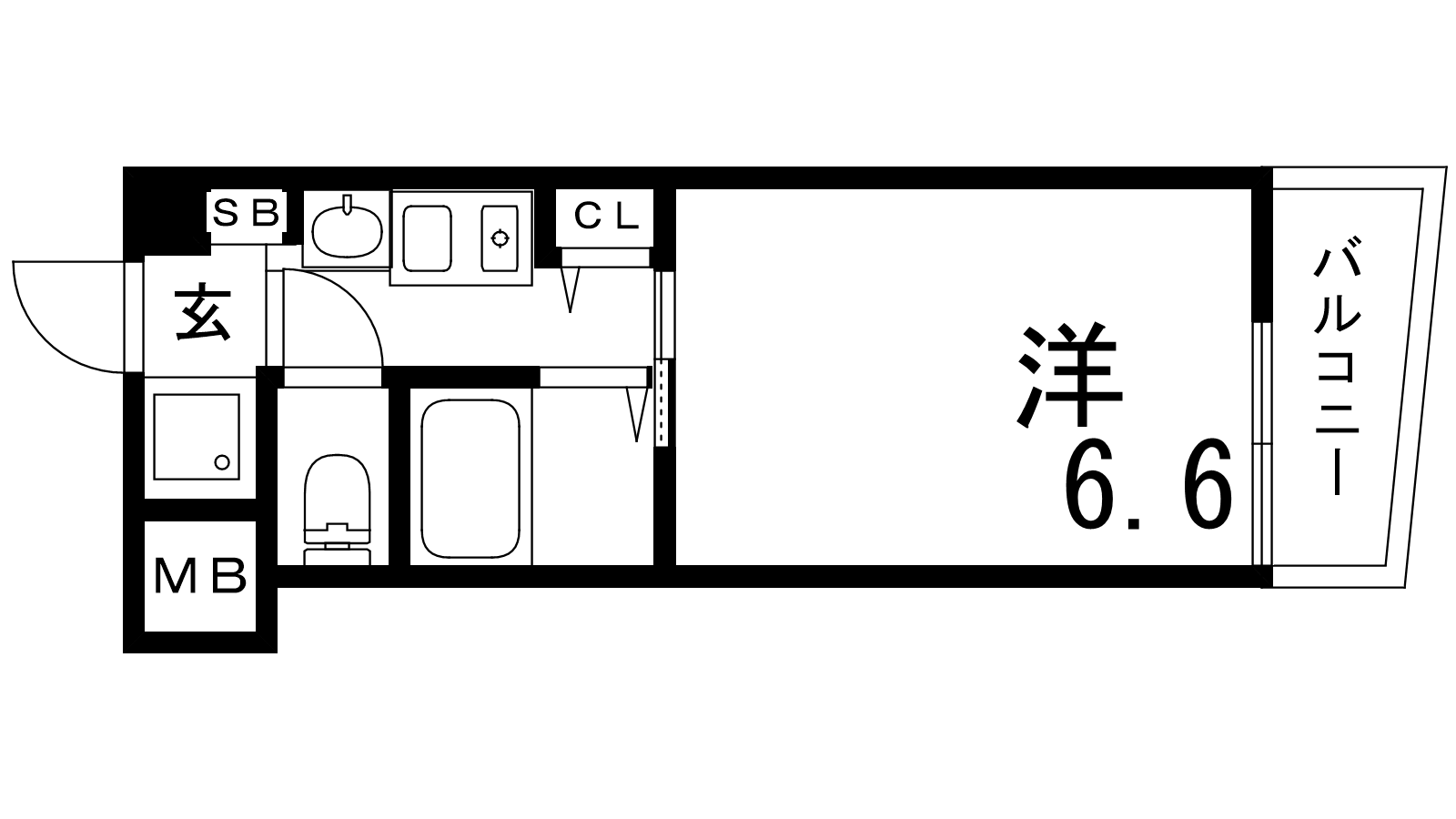 - K2帖、洋室6.6帖
