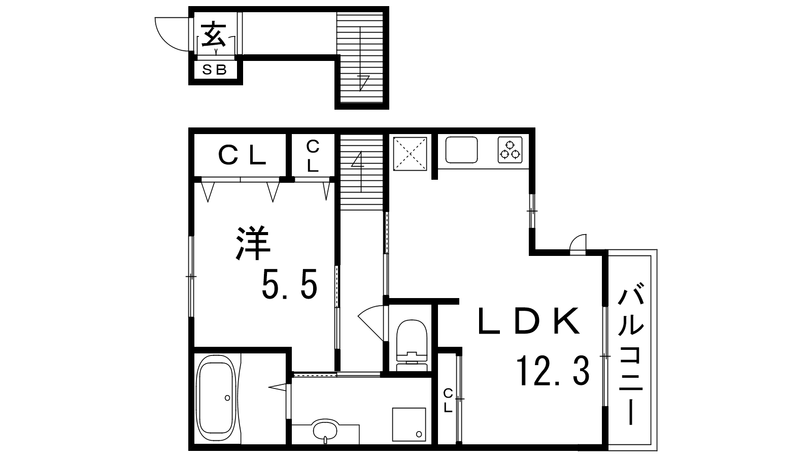 - LDK12.3帖、洋室5.5帖