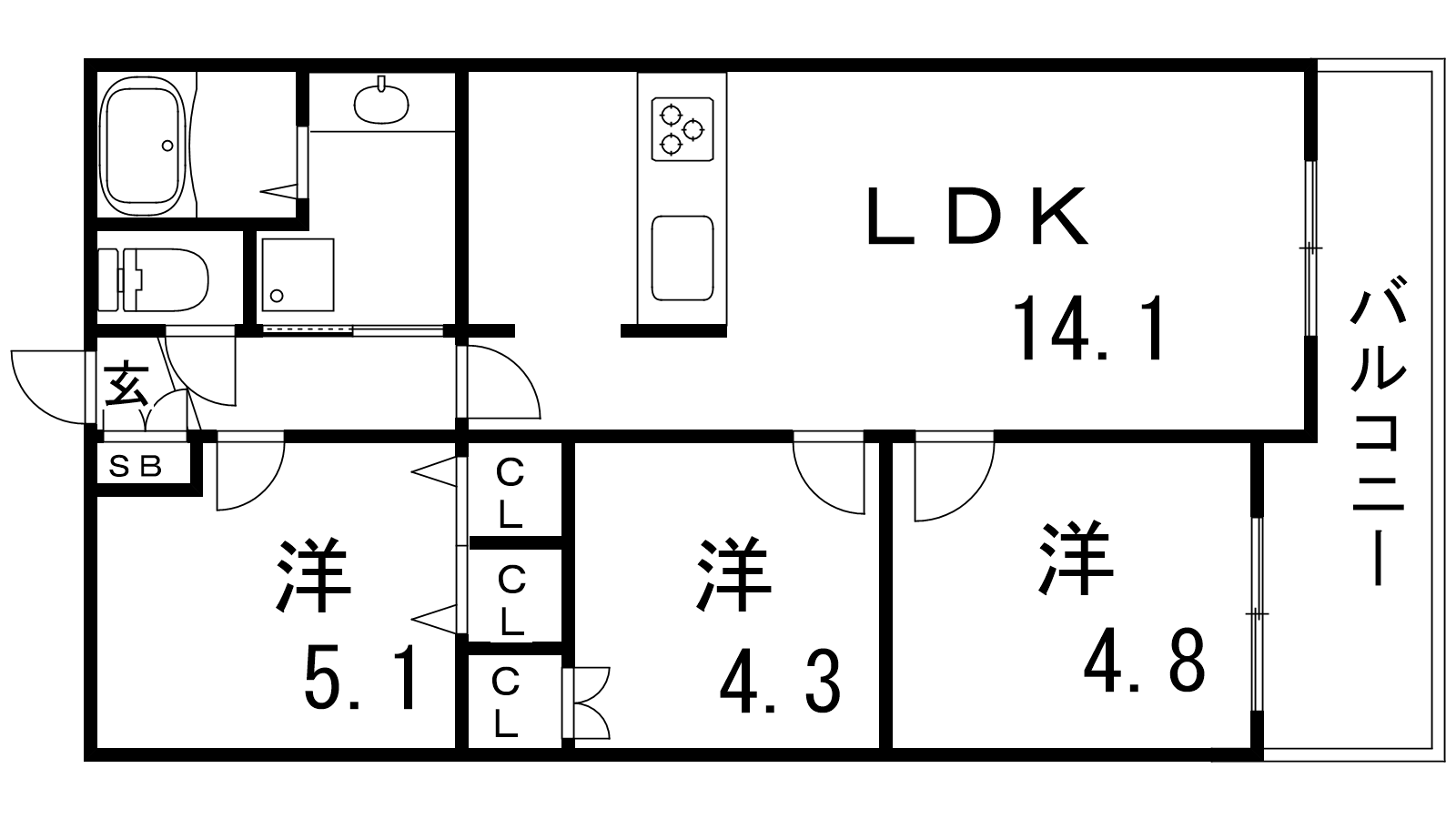 - LDK14.1帖、洋室5.1帖、洋室4.3帖、洋室4.8帖