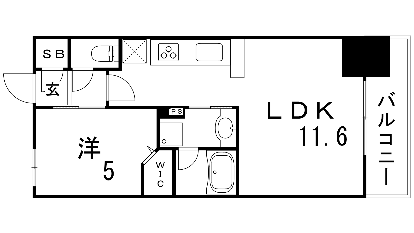 - LDK11.6帖、洋室5帖