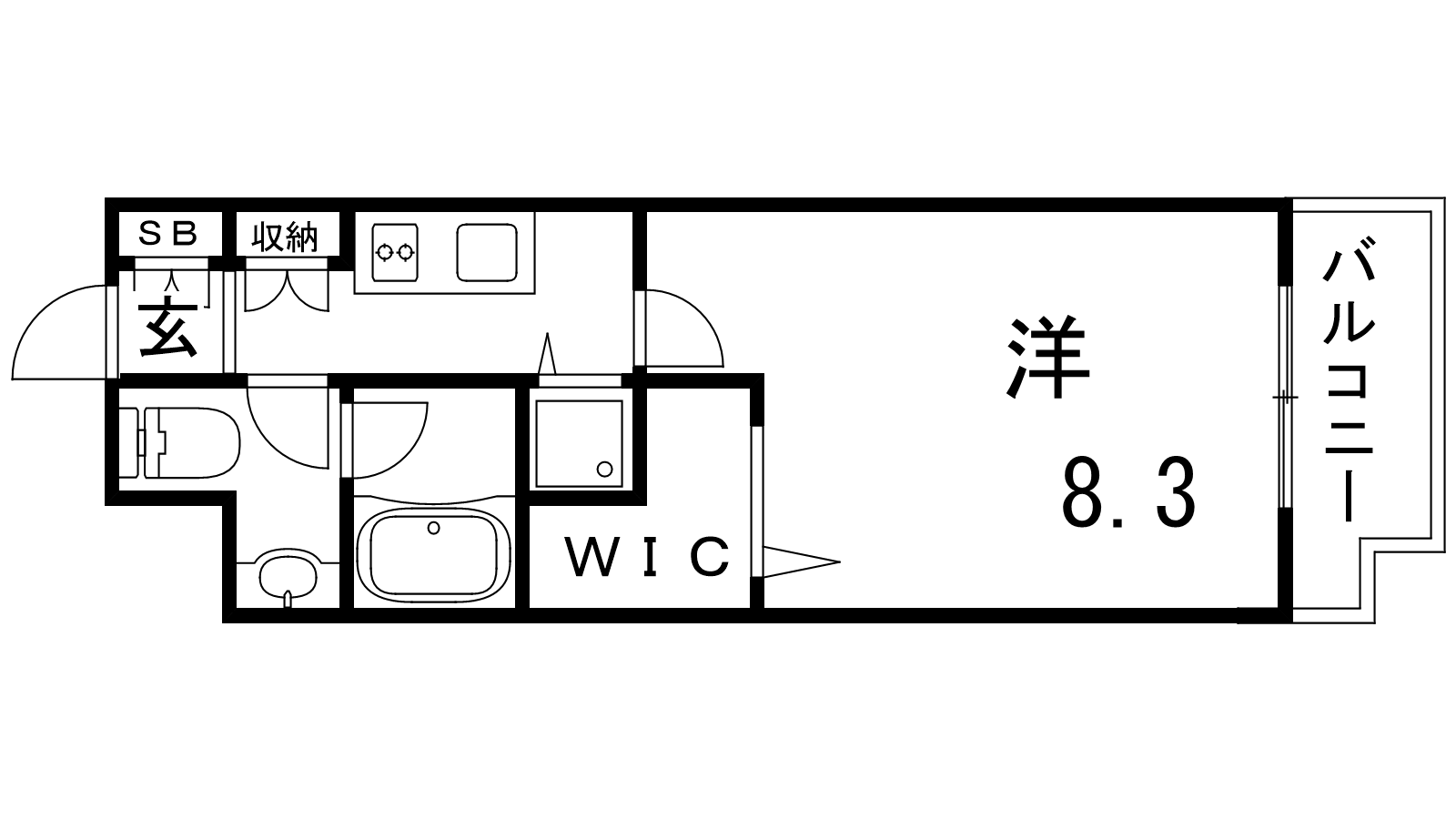 - K2帖、洋室8.3帖