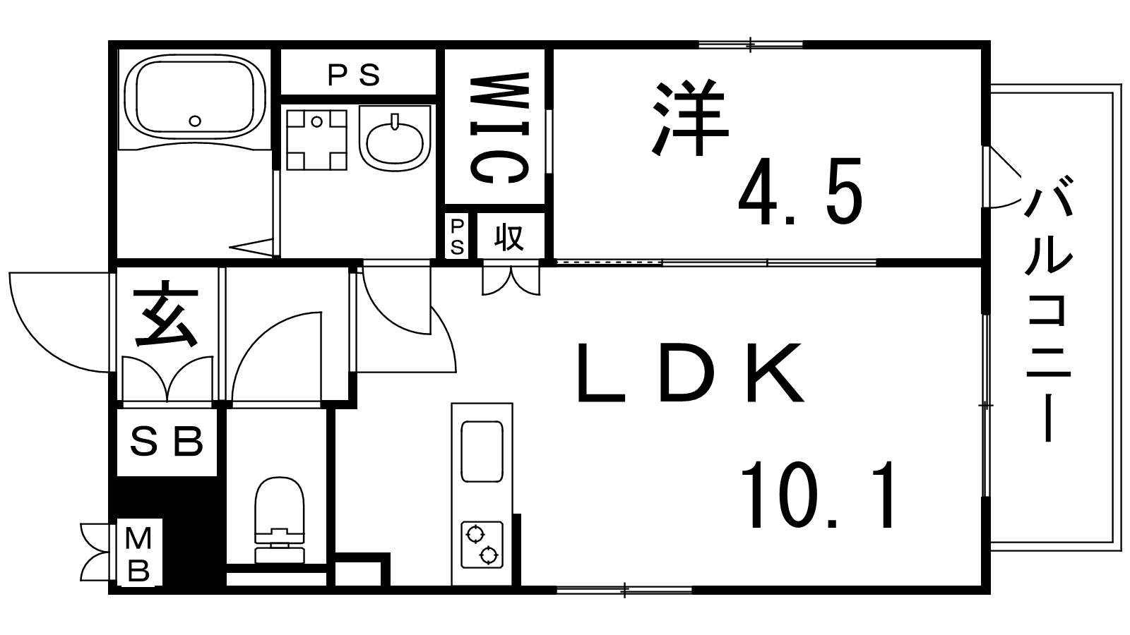 - 洋室4.5帖、LDK10.1帖