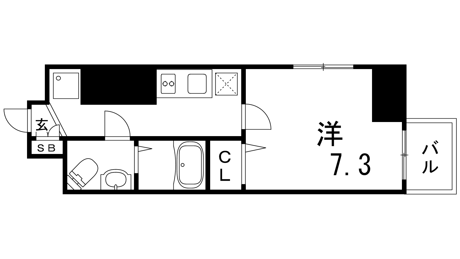 - K3帖、洋室7.3帖